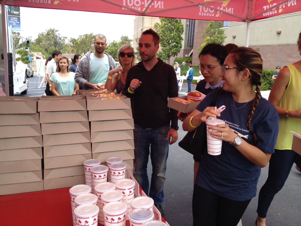 On June 27, 2014, the First Annual Biological Sciences School Picnic was hosted by Dean Frank LaFerla for the school’s faculty, staff and graduate students. The occasion celebrated the people of the Biological Sciences School and kicked off the 50th anniversary celebration of UCI. The picnic was held in the plaza behind Natural Sciences II and the event featured lunch provided by the In-N-Out Truck. Over 300 people attended the picnic, with all four departments, the Office of the Dean, and many centers and laboratories represented.